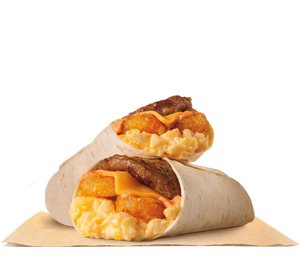 Our grab-and-go Hash Brown Burrito is a combination of scrambled eggs, savory sausage, melted American cheese, crunchy hash browns and creamy spicy sauce all wrapped up in a soft white flour tortilla.